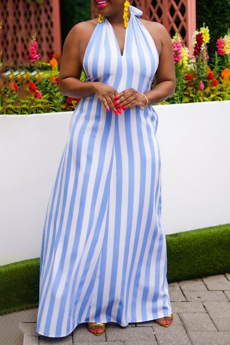 Blue Sexy Casual Simplicity Striped Basic Printing Halter Printed Dress Dresses