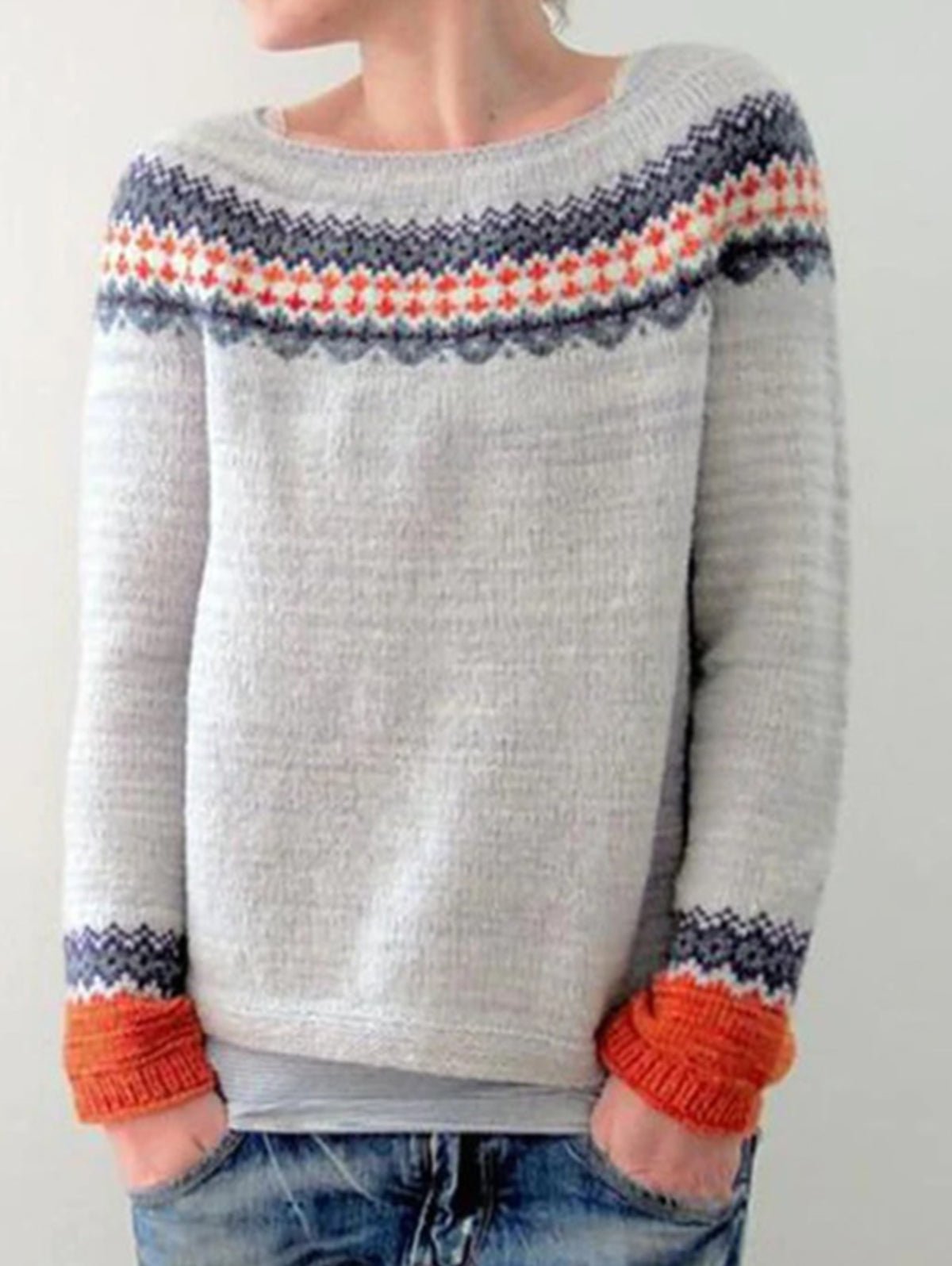 Be the first to review “Boat Neck Retro Geo & Colorblock Knit Sweater”