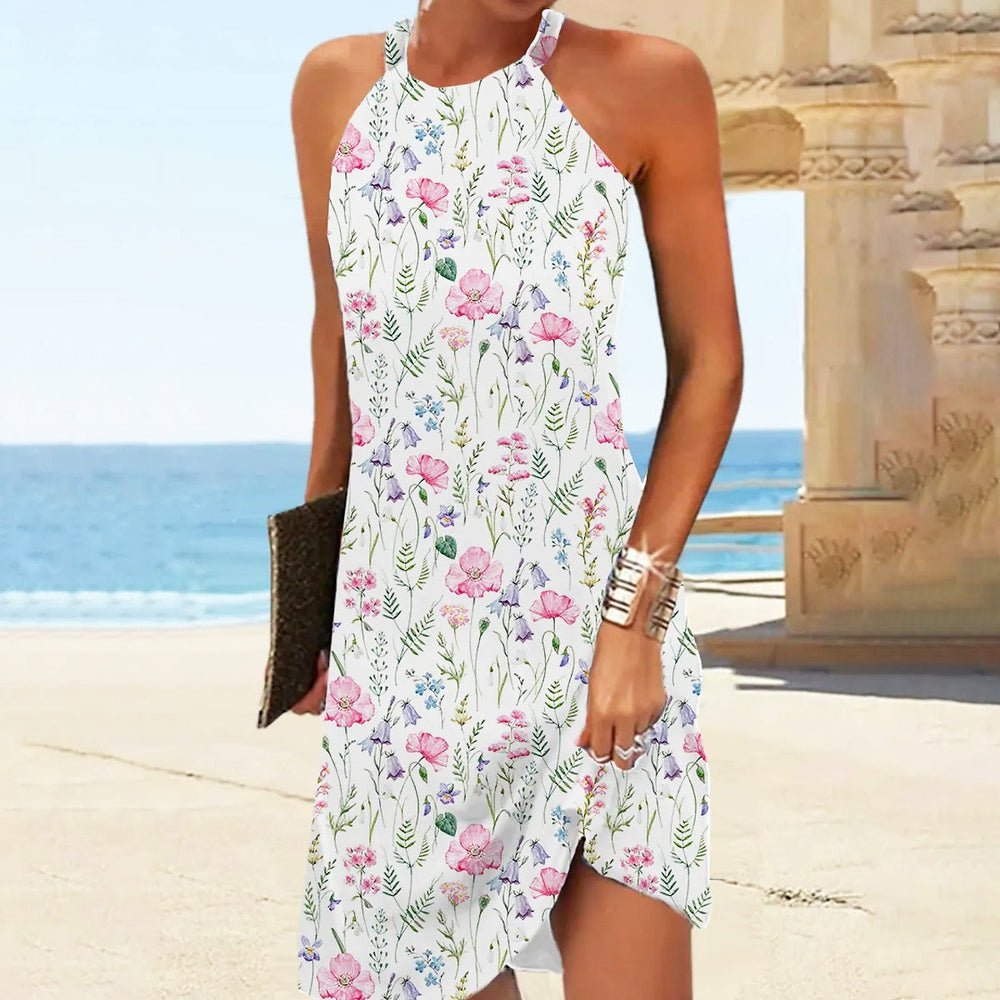 Breezy Halter Sleeveless Floral Print Mini Dress
