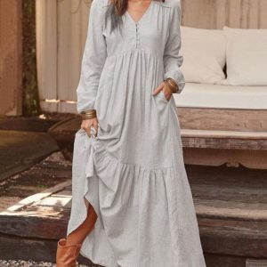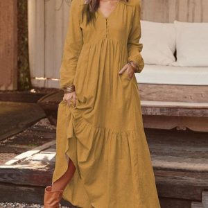 Be the first to review “Buttoned Cotton and Linen Retro Casual Long-sleeved Dress”