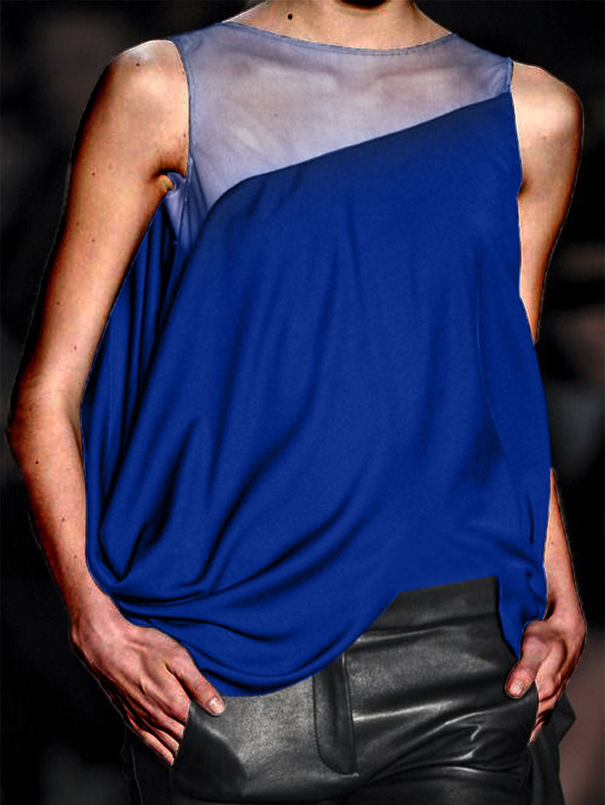Casual Plain Crew Neck Sheer Mesh Spliced Loose Tank Top