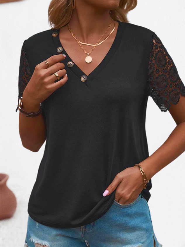 Casual Plain Lace Buttoned Shirt
