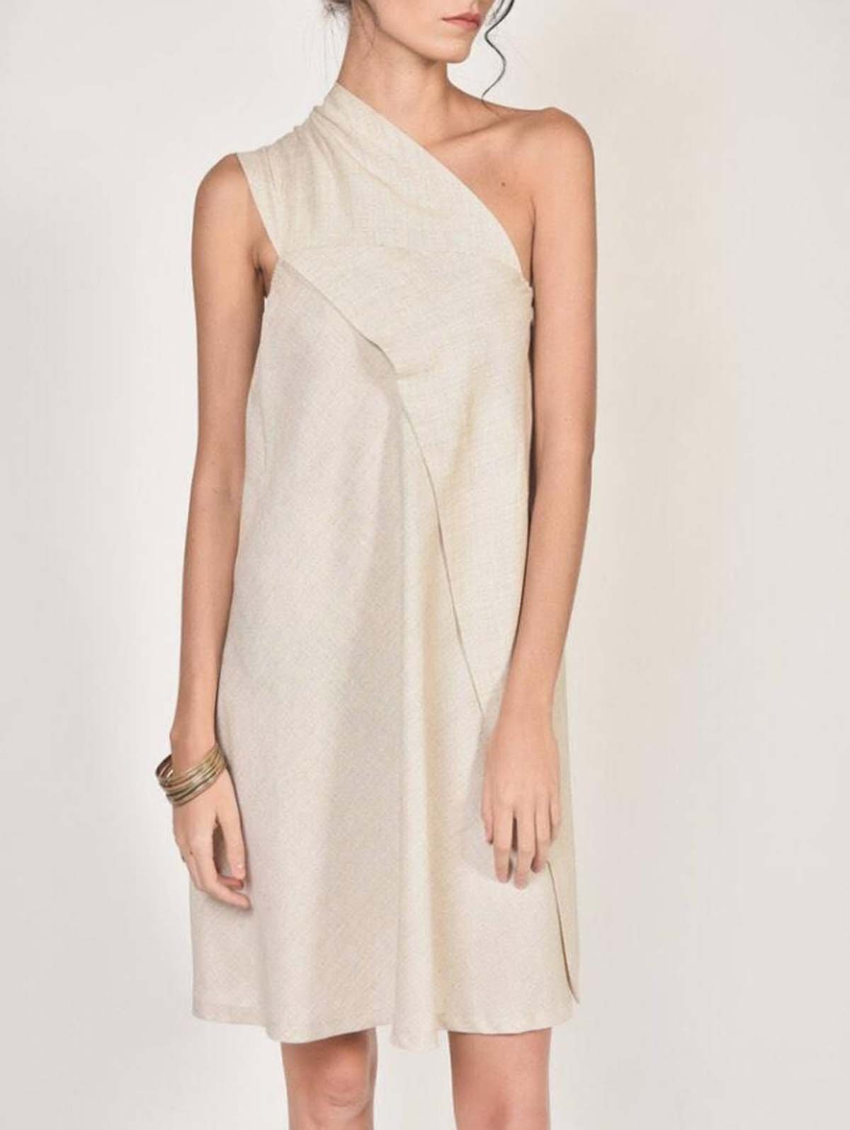 Be the first to review “Casual Solid Color One Shoulder Sleeveless Spliced Midi Dress”