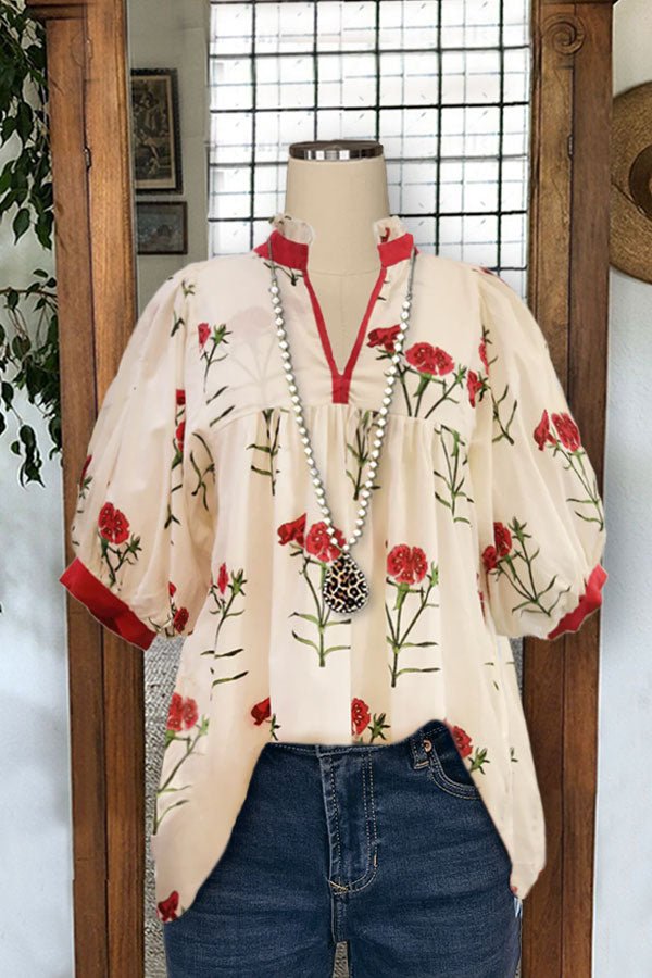 Be the first to review “Elegant Floral Print Pleated Puff Sleeve V-neck Top”