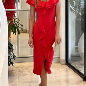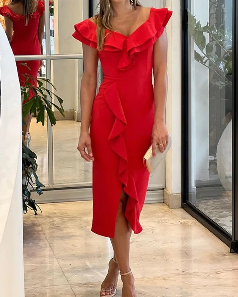 Be the first to review “Fashion Solid Color Ruffle Dress”