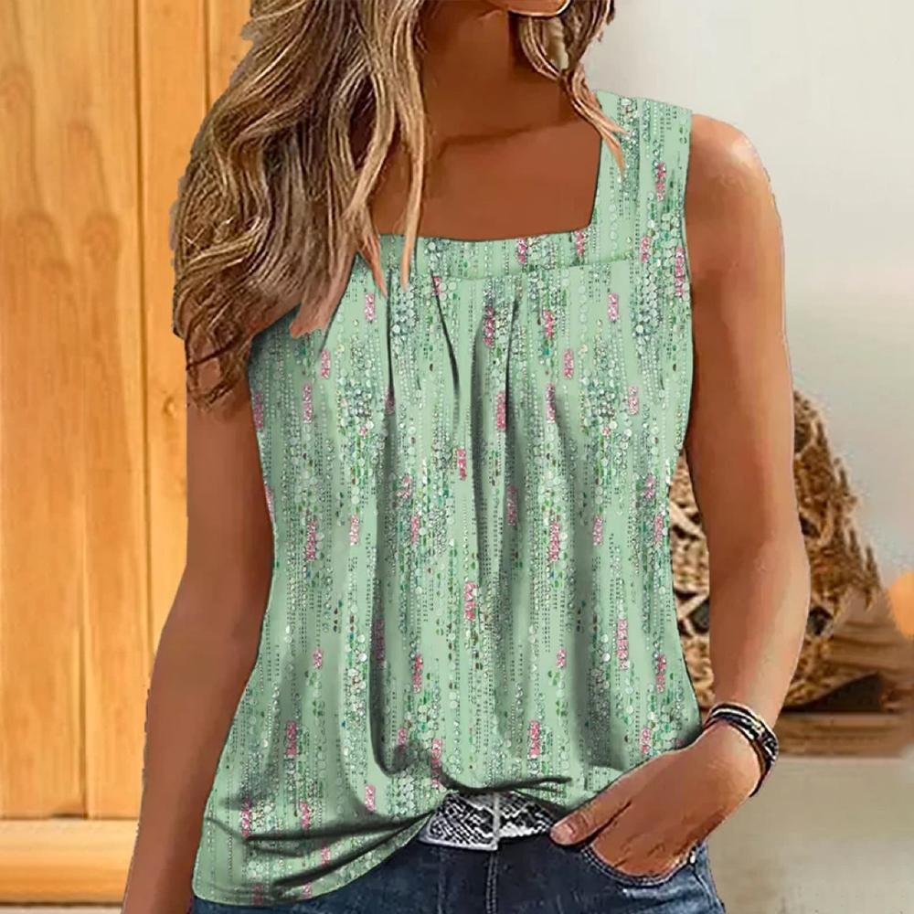 Green Print Sleeveless Tank Top