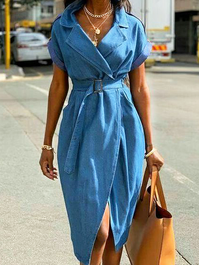 Lightweight Urban Loose Short sleeve Lapel Collar Dress