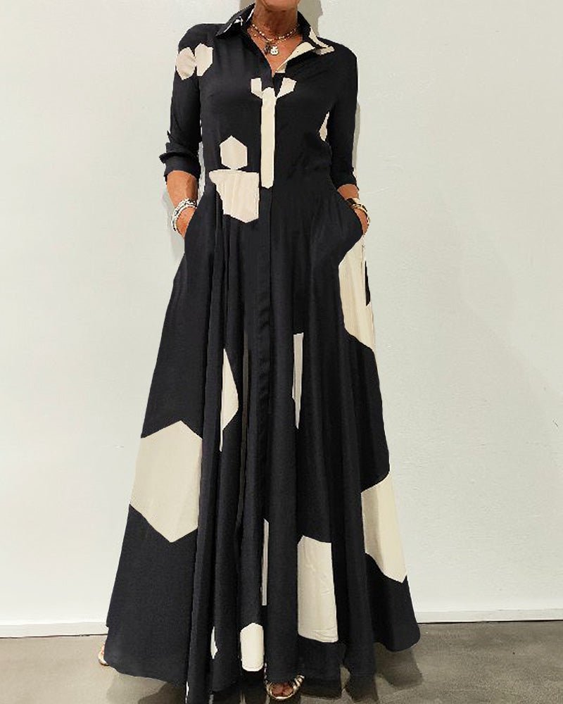 Be the first to review “Long Sleeve Lapel Geometric Print Dress”