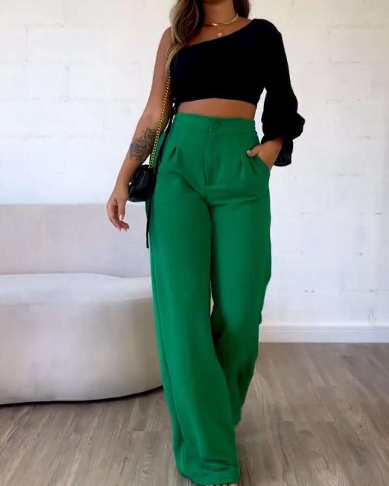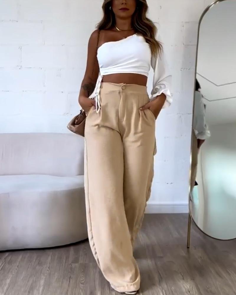Long Sleeve Shoulder Jacket Straight Pants Set