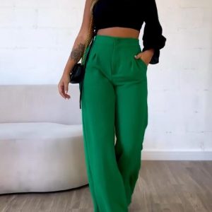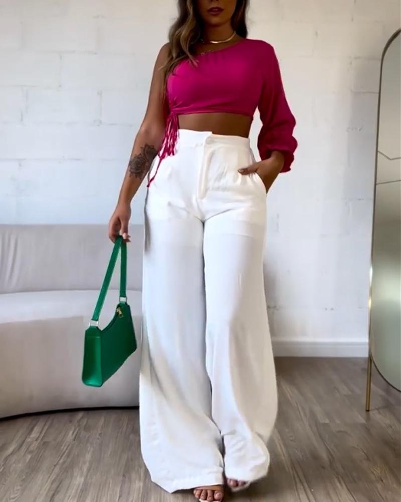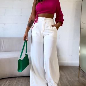 Be the first to review “Long Sleeve Shoulder Jacket Straight Pants Set”