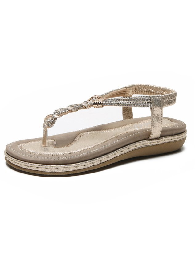 Metallic Rhinestone Comfy Slip On Thong Sandals