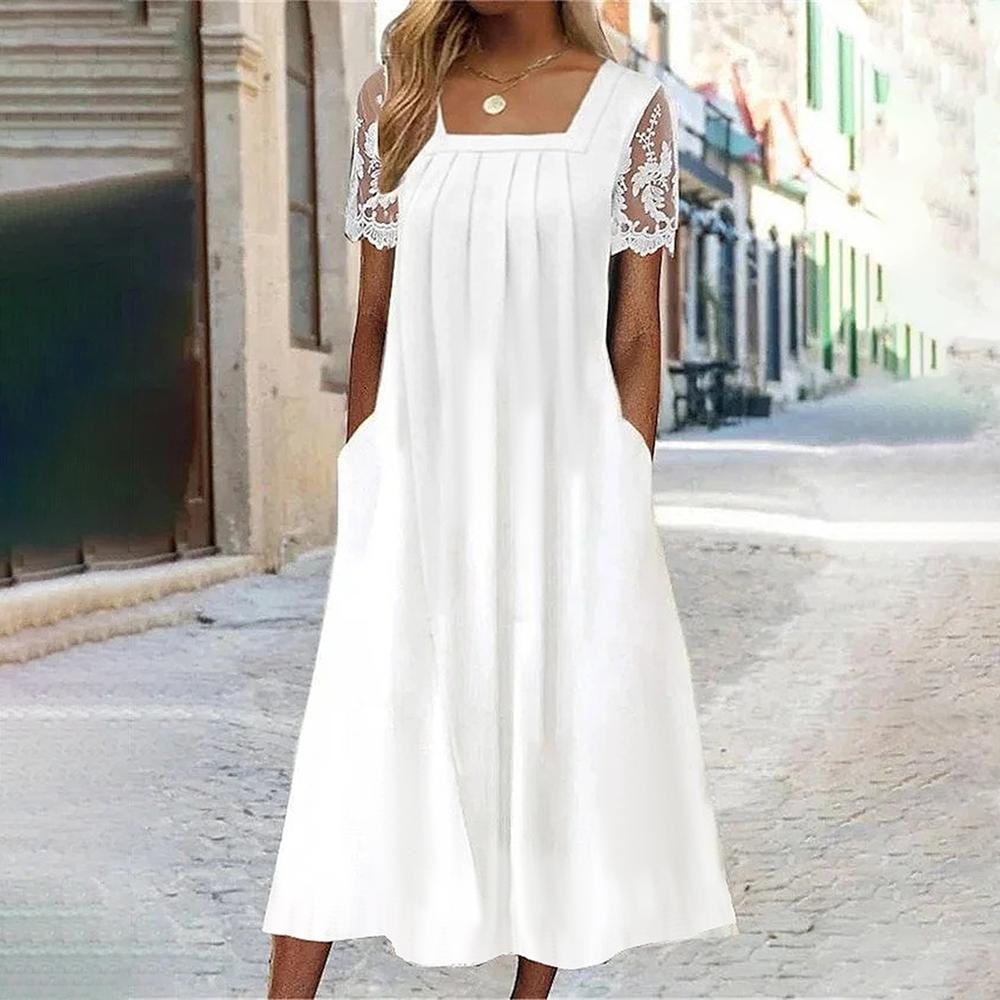 Modern Plain Square Neck Midi Dress