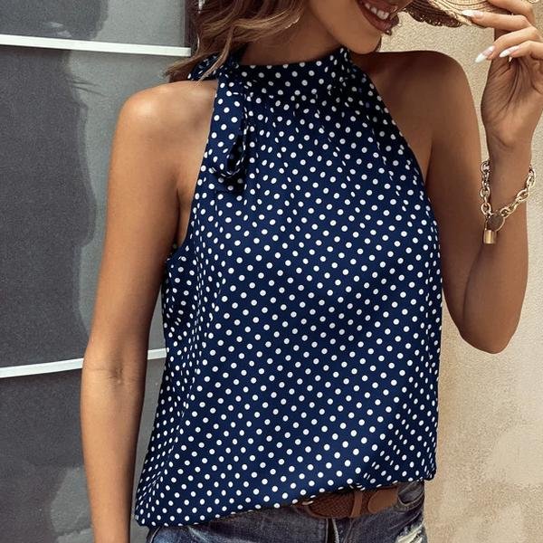 Be the first to review “Navy Sleeveless Polka Dot Tank Top”