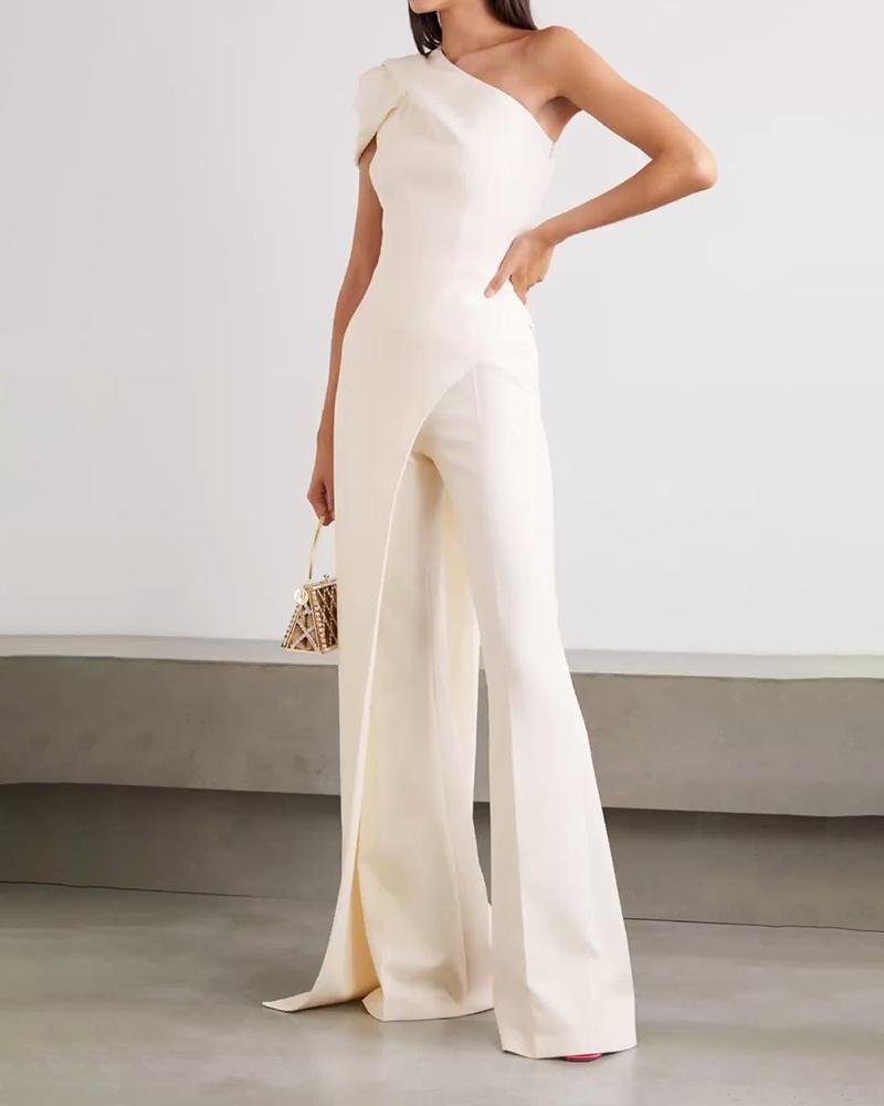 Be the first to review “Oblique Shoulder Solid Color Jumpsuit”