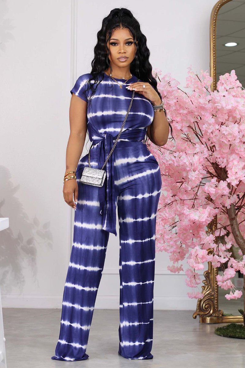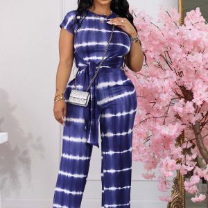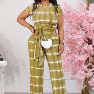 Be the first to review “Pattern Print Short Sleeve Tie Up Sash Crop Top Straight Leg Two-Piece Set”