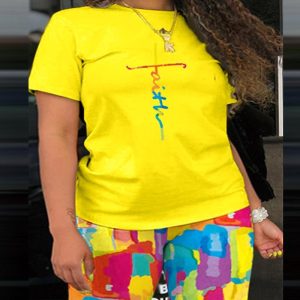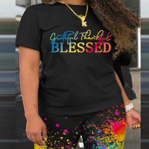 Be the first to review “Plus Size Grateful Thankful Blessed Ink Splash Print Top & Shorts Set”