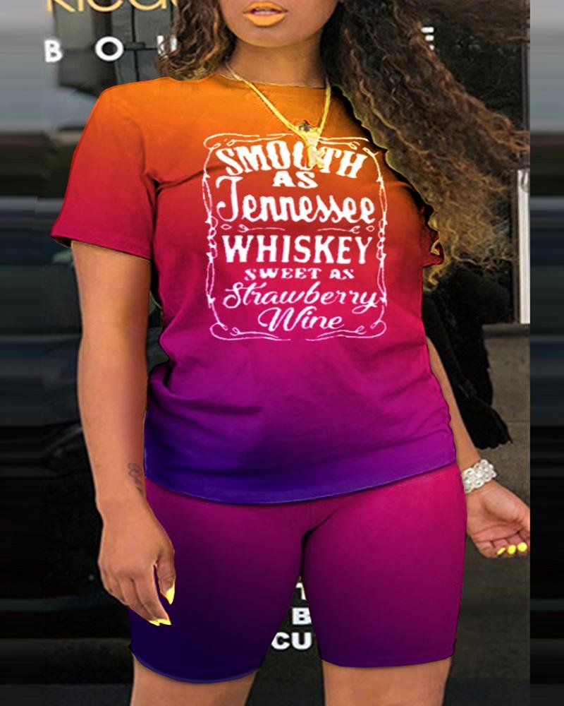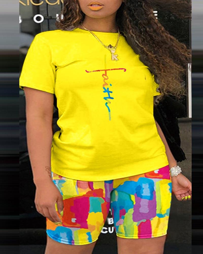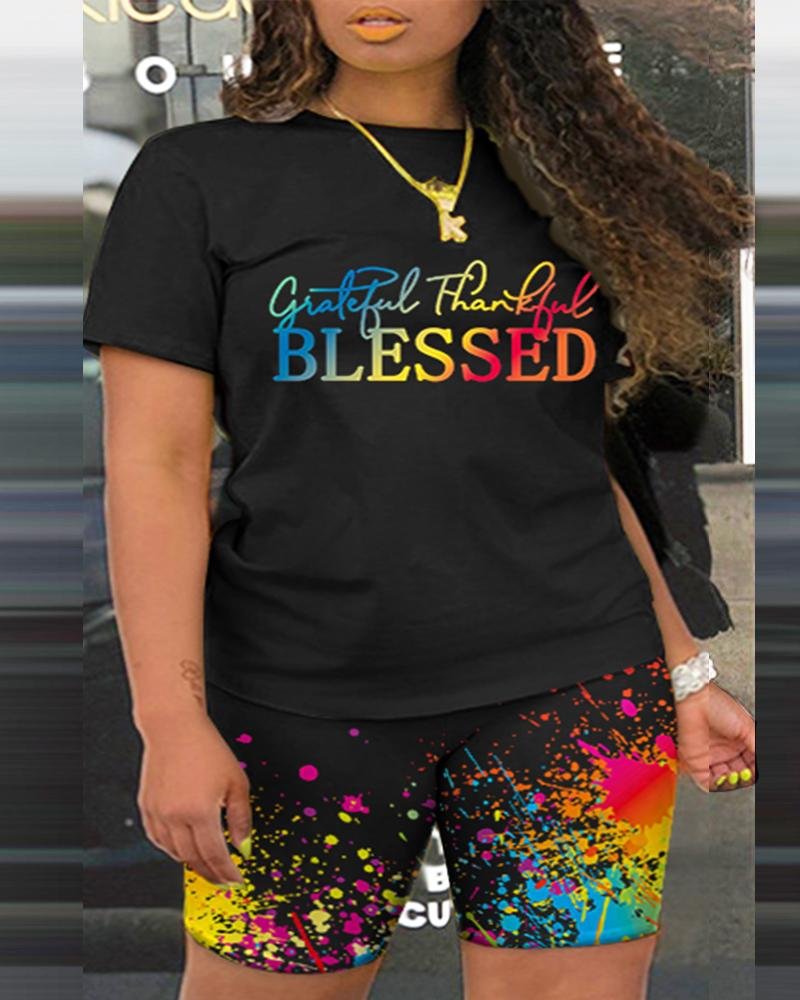 Plus Size Grateful Thankful Blessed Ink Splash Print Top & Shorts Set