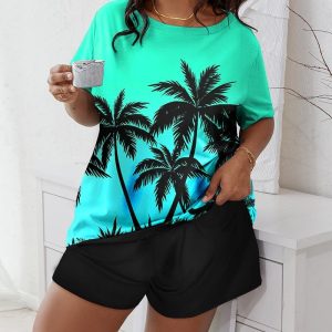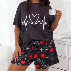 Be the first to review “Plus Size Heart Print Short Sleeve Pajamas Set”