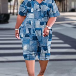Be the first to review “Plus Size Striped Colorblock Pocket Design Short Sleeve Jumpsuit”