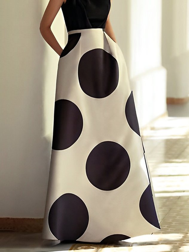 Polka Dots Regular Fit Elegant Maxi Skirt