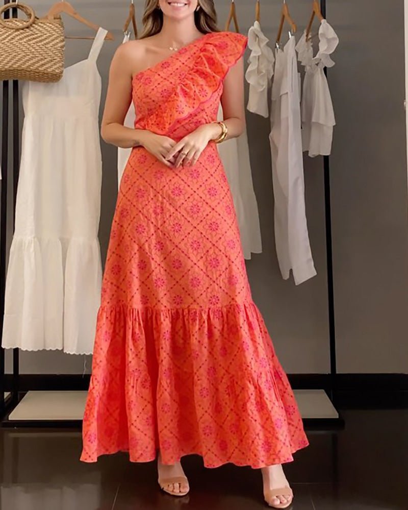 Be the first to review “Ruffle Shoulder Long Slim Lace Dress”