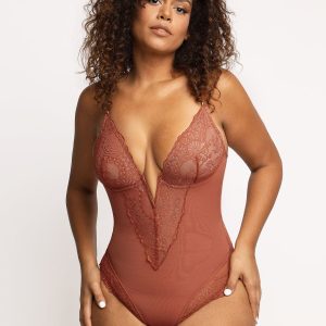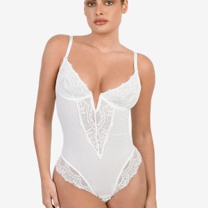 Sexy Lace Deep-V Neck Bodysuit...