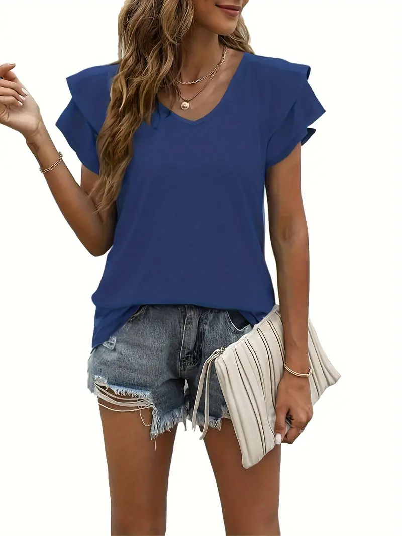 Solid Casual Loose Ruffle Sleeve T-shirt Top