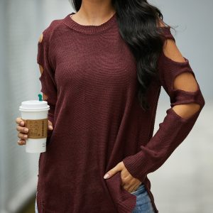 Be the first to review “Solid Color Long Sleeve Knitted Hollow Sweater”