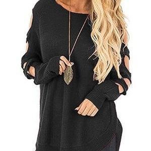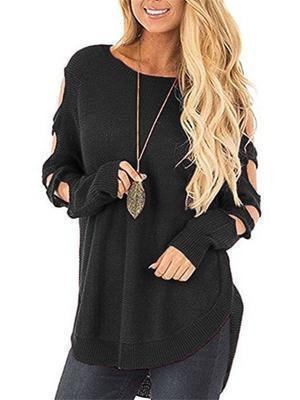 Solid Color Long Sleeve Knitted Hollow Sweater