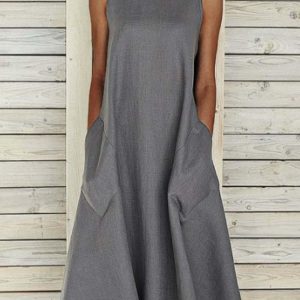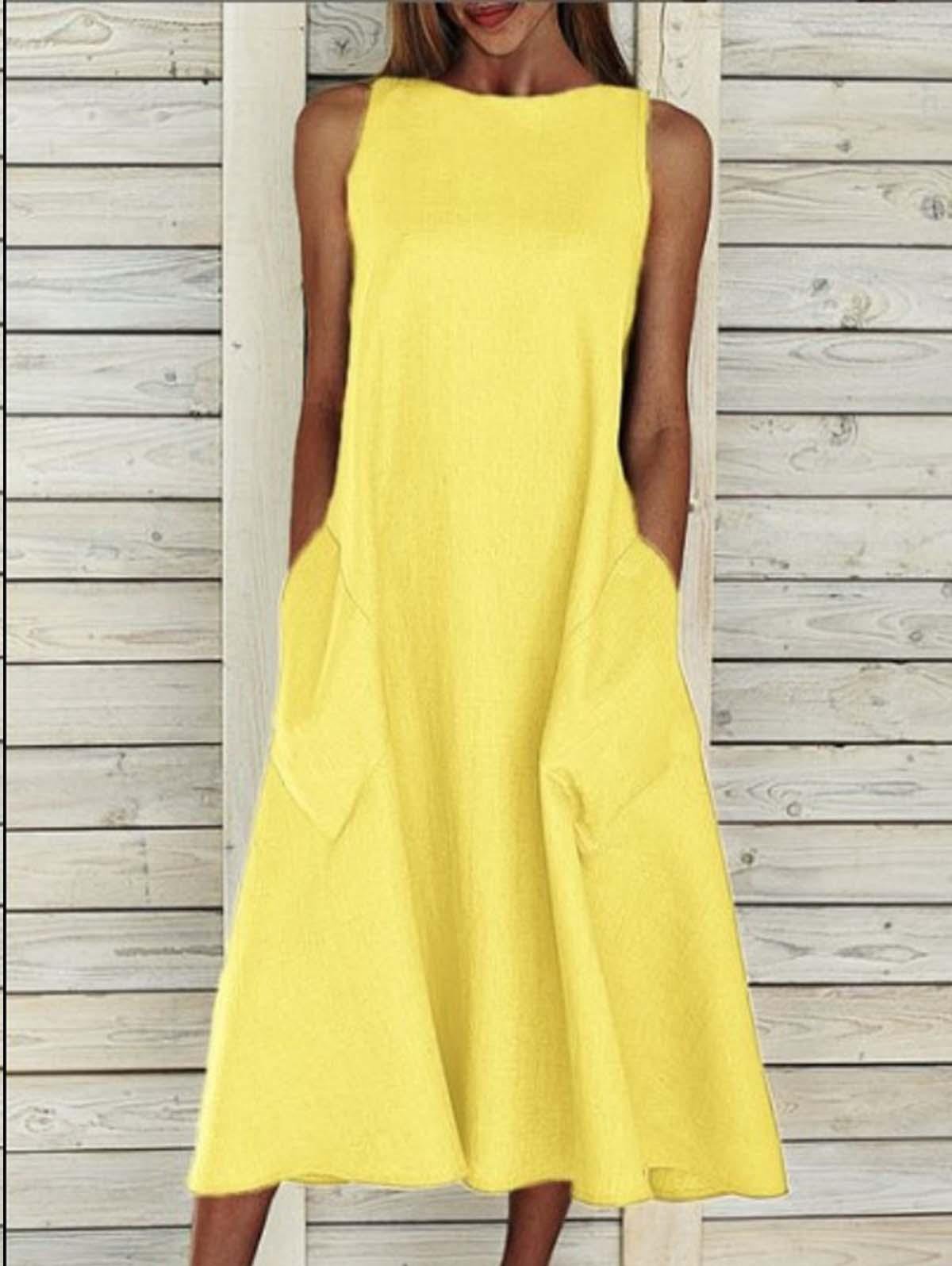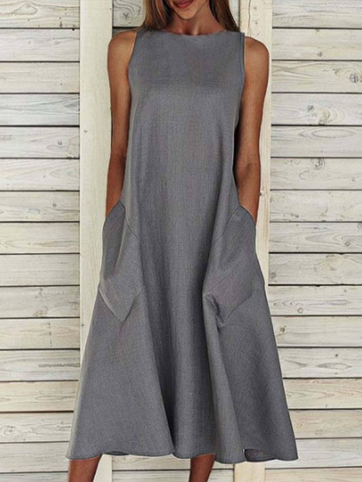 Be the first to review “Solid Tunic Round Neckline Midi A-Line Dress”