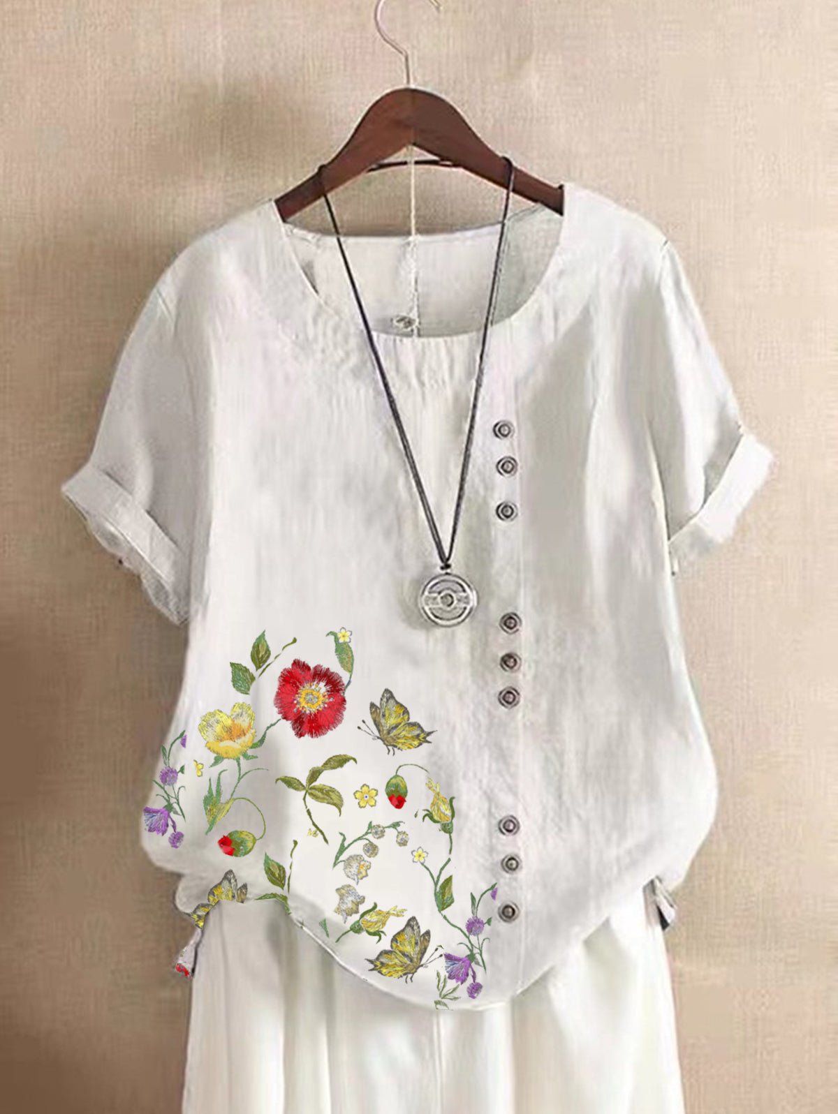 Be the first to review “UR Floral Print Crew Neck Button T-Shirt”
