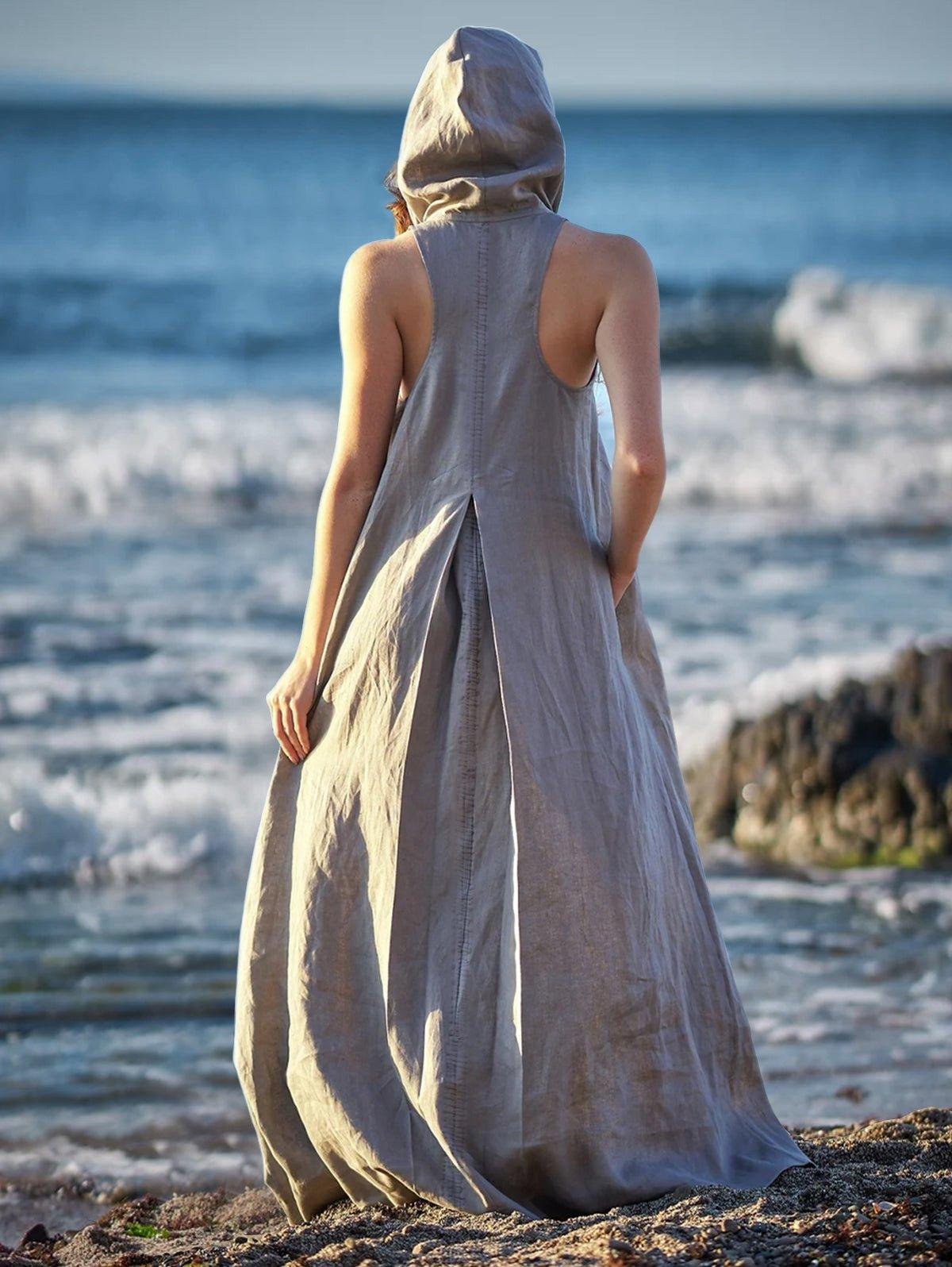 UR Linen Hoodie Sleeveless Kaftan Dress