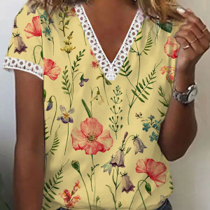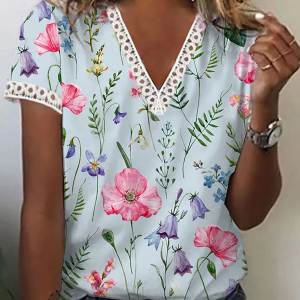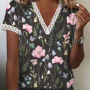 Be the first to review “V Neck Floral Lace Casual T-Shirt/Tee”