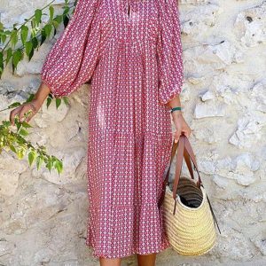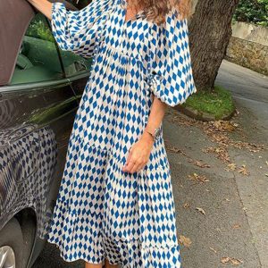 Be the first to review “V-neck Geometric Print Loose Dress”