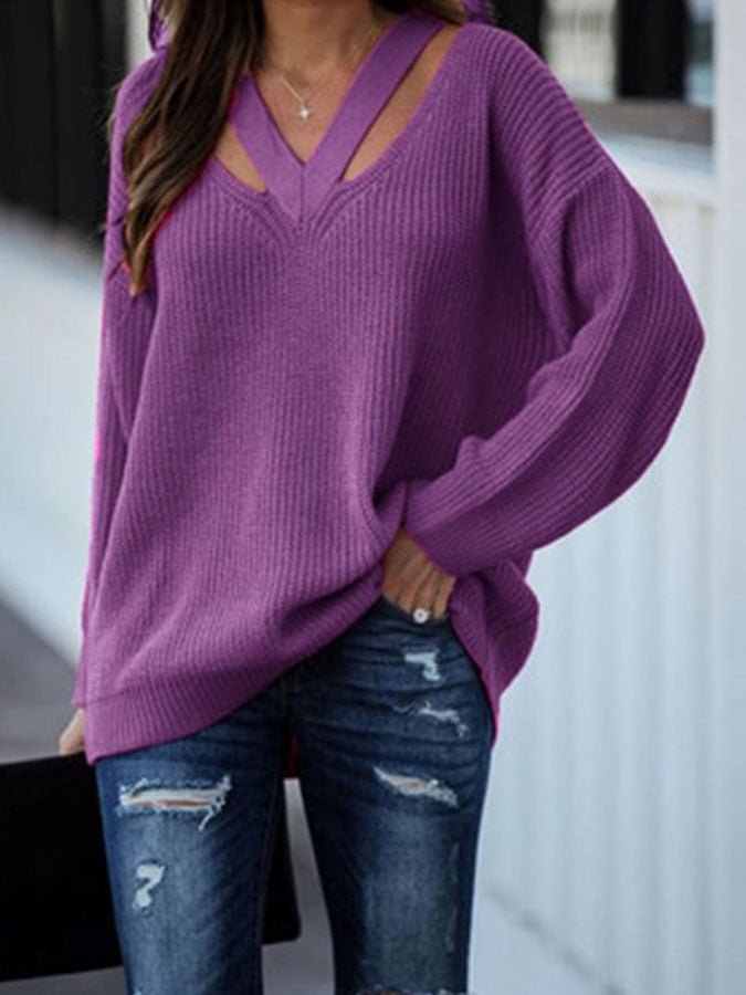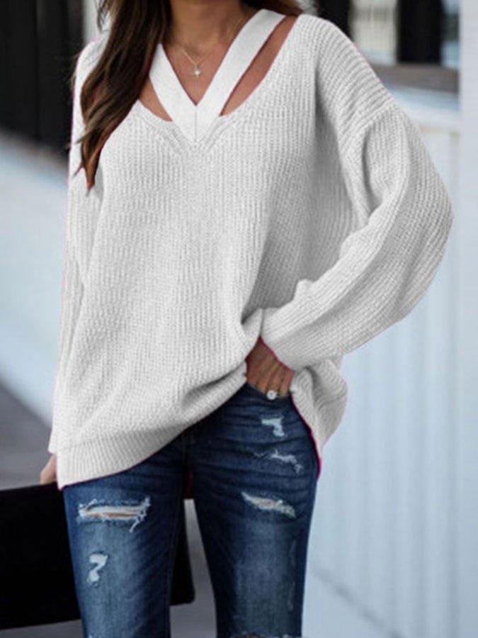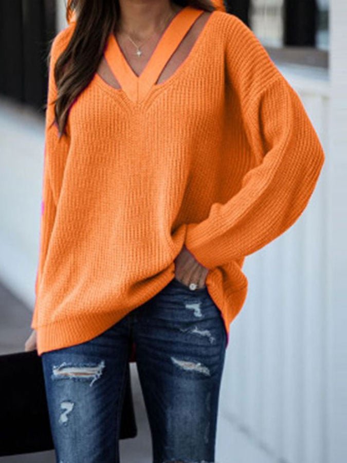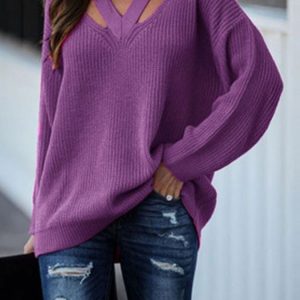 Be the first to review “V-Neck Loose Solid Color Sweater”