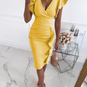 Be the first to review “V-neck Ruffle Sleeve Dress”
