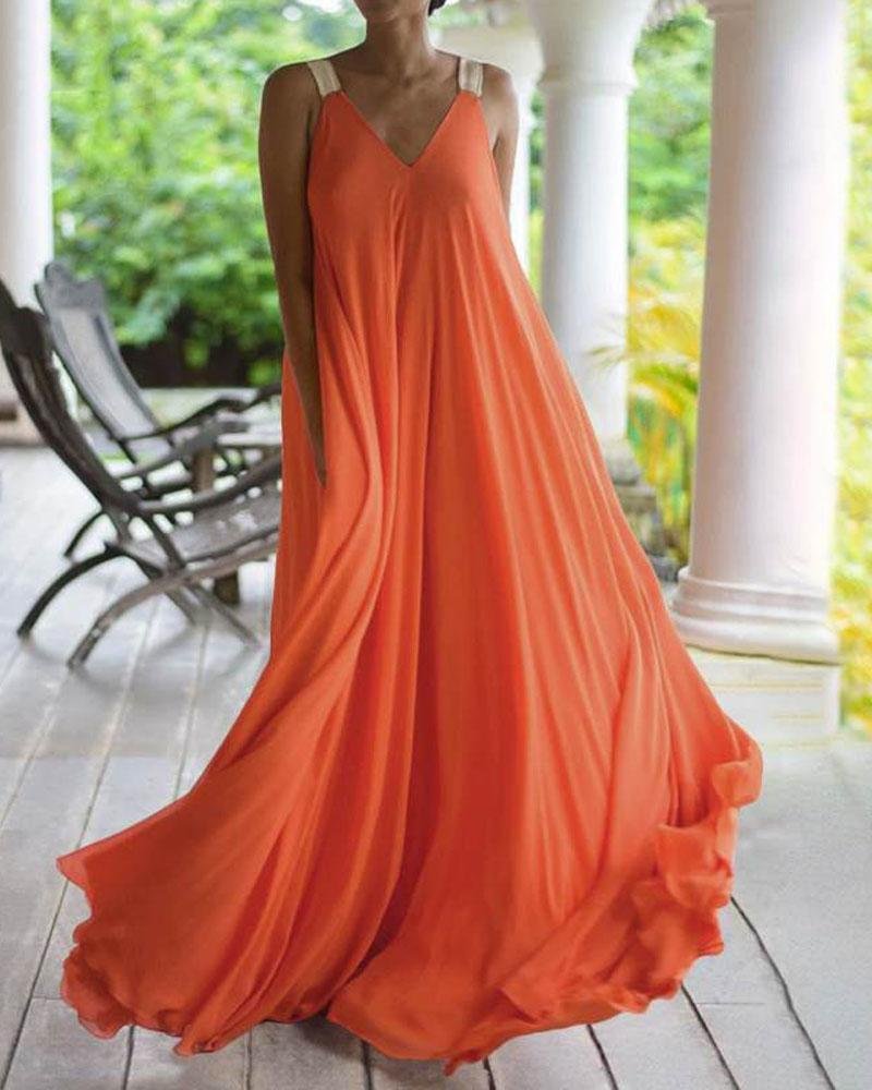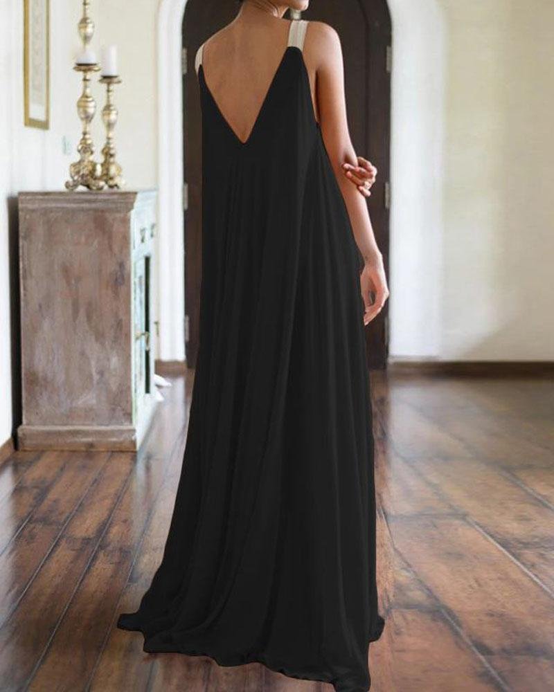 Be the first to review “V-neck Solid Color Suspender Dress”
