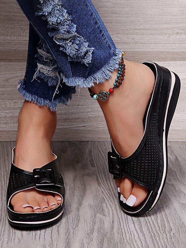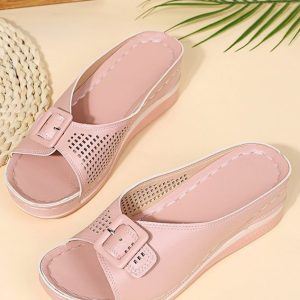 Be the first to review “Vintage Hollow Buckle Design Wedge Slippers”