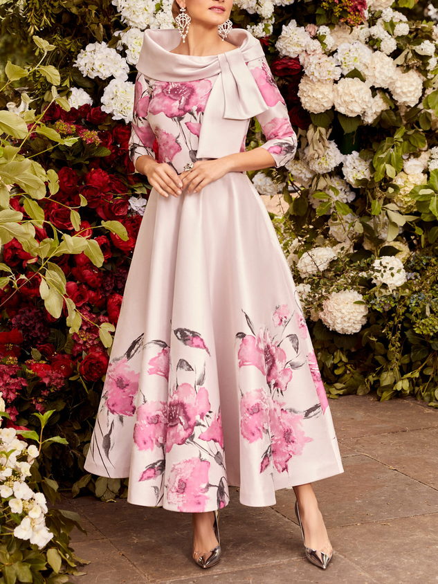 Wedding Guest Satin Floral Elegant Dress