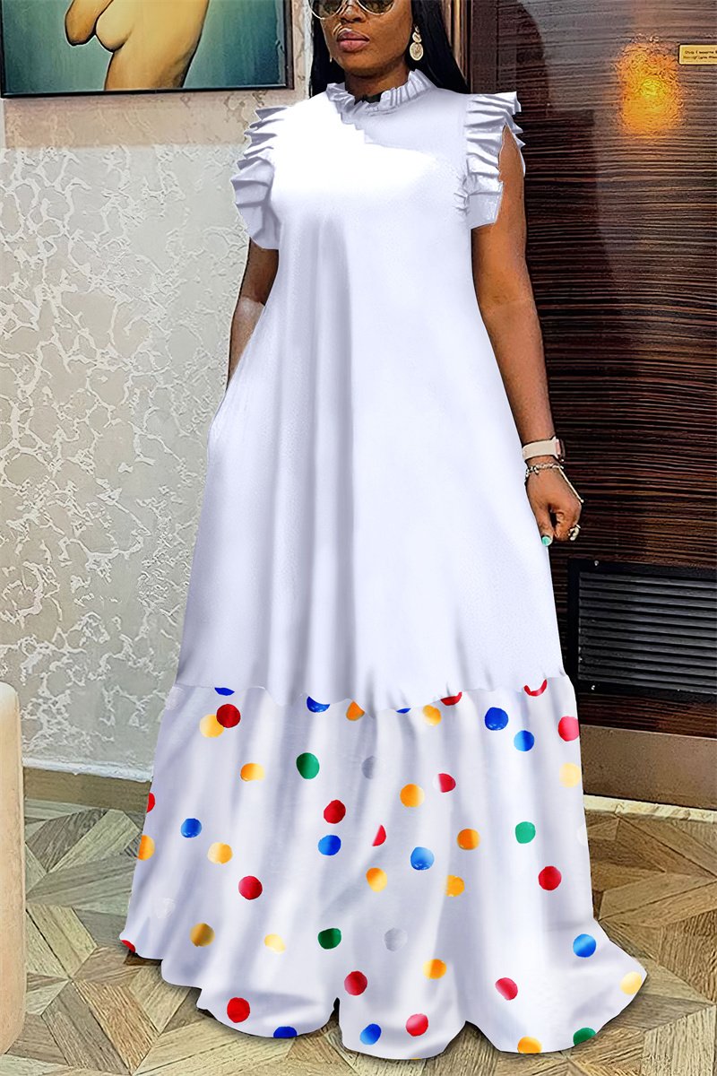 White Vintage Elegant Print Leopard Patchwork Long Dress Plus Size Dresses