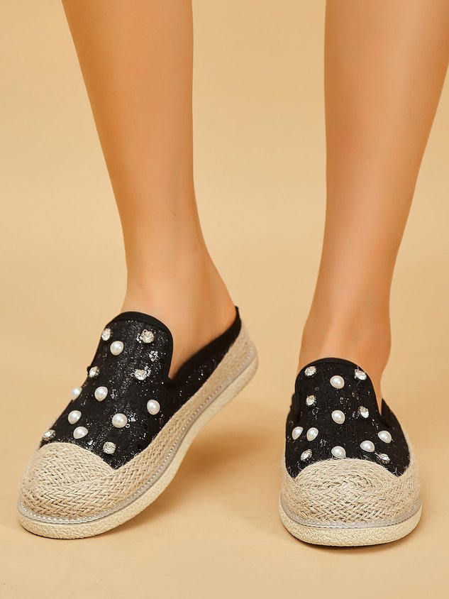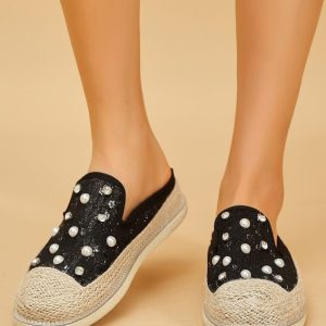 Be the first to review “Women Faux Pearls Floral Lace Espadrille Mules”