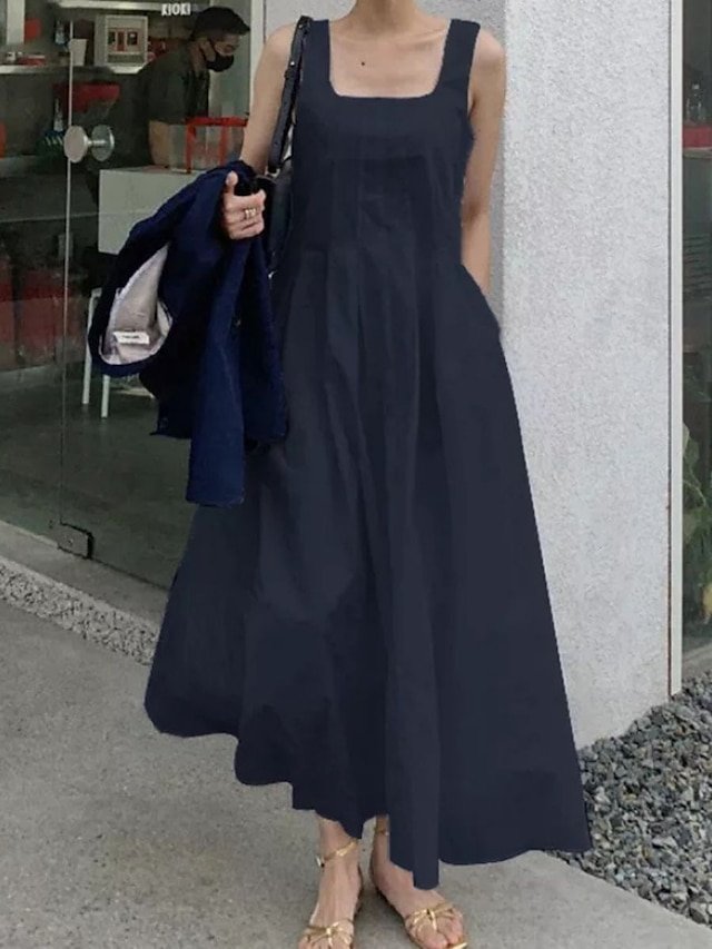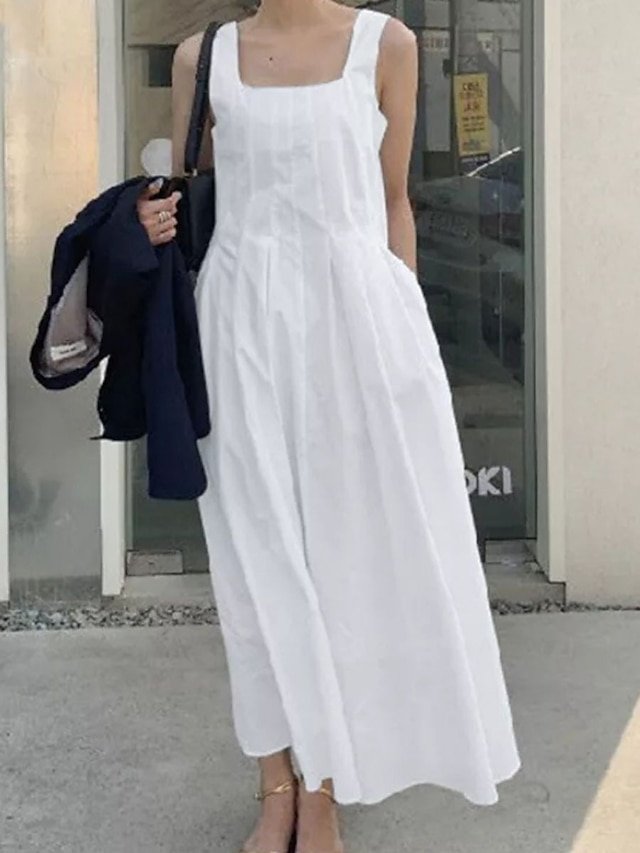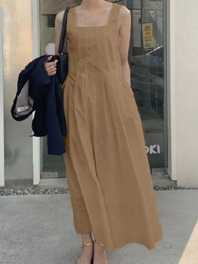 Women’s Casual Dress Cotton Linen Dress Maxi long Dress Bamboo Fashion Modern Outdoor Daily Vacation Square Neck Ruched Sleeveless Summer Spring 2024 Regular Fit White Blue khaki Plain S M L XL 2XL#9554515