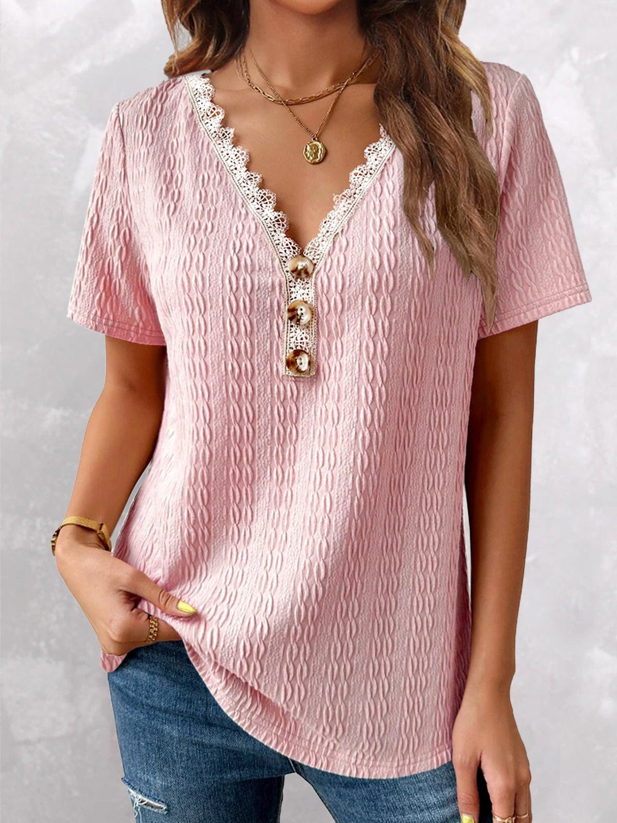 Be the first to review “Women’s Lace Neck Short Sleeve V-neck Top”