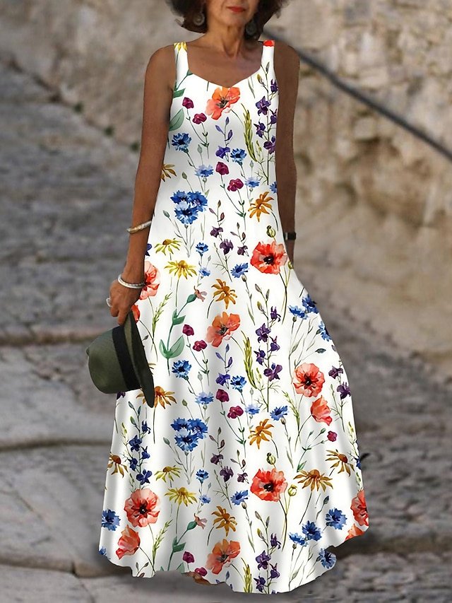 Women’s Long Dress Maxi Dress Casual Dress A Line Dress Summer Dress Floral Fashion Streetwear Daily Date Going out Print Sleeveless Strap Dress Regular Fit White Pink Summer Spring S M L XL XXL#9536969