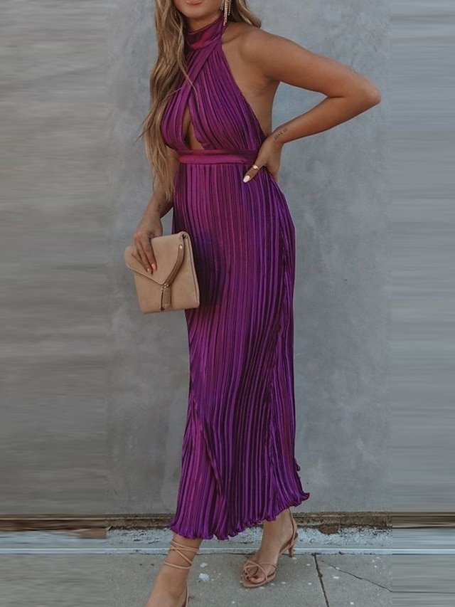 Women’s Prom Dress Party Dress Wedding Guest Dress Long Dress Maxi Dress White Pink Purple Sleeveless Pure Color Pleated Summer Spring Halter Fashion Birthday Evening Party Wedding Guest 2024 S M L XL#9555366