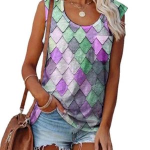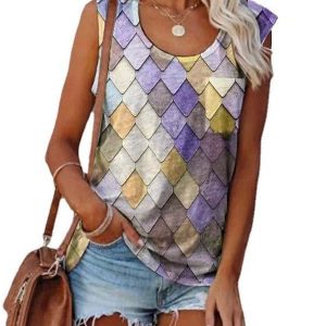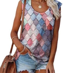 Be the first to review “Women’s Sleeveless Scoop Neck Chic Printed Tops T-shirts”